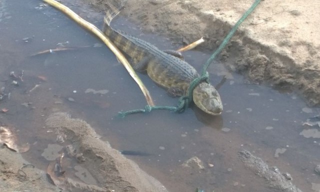 Após visualizar e neutralizar o reptil, amarrando-o com